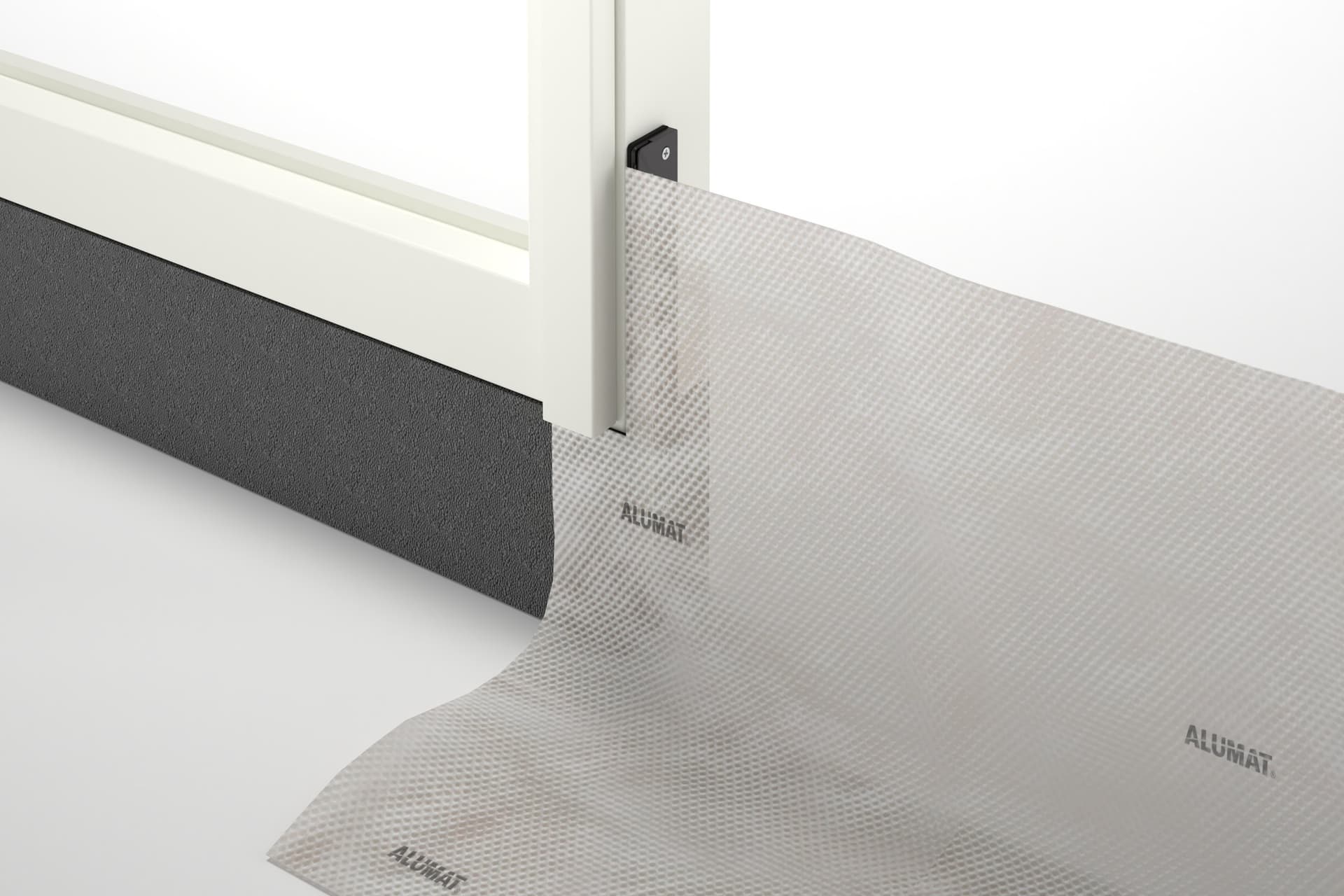 Die Flexibilität liegt in den beiden Komponenten Klemmleiste und Vließformteil begründet.Ist eine Rollladenführungsschiene verbaut, kann die Vlies-Eckfahne einfach seitlich in die Klemmleiste eingeschoben werden ohne die Führungsschiene entfernen zu müssen. Zudem gibt es keine sichtbare Abdichtung auf dem Rahmen. Durch das Butylband und die Verschraubung ist kein zusätzlicher Dichtstoff nötig. Die Vliesformteile beim 2-teiligen Abdichtungsflansch werden erst auf der Baustelle eingebracht.