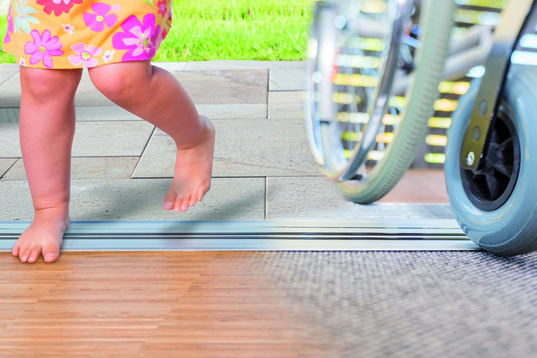 Dank ALUMAT ist absolute Schwellenfreiheit selbst bei Außentüren seit 30 Jahren möglich. Dadurch kann jeder komfortabel und sicher in alle Gebäude und Wohnungen gelangen. Auch die wertvollen Sonnenplätze auf Terrassen und Balkonen können ohne jegliche Barriere oder Sturzgefahr genossen werden. Immer höhere Dichteklassifizierungen, beste Langzeitbewährung in der Baupraxis, maximale Systemsicherheit durch industrielle Vorfertigung und Empfehlungen in offiziellen Forschungsarbeiten zeigen: mit ALUMAT bleibt auch ohne Schwelle jedes Wetter draußen und alle DIN-Normen sowie übergeordneten Gesetze werden vollumfänglich erfüllt.