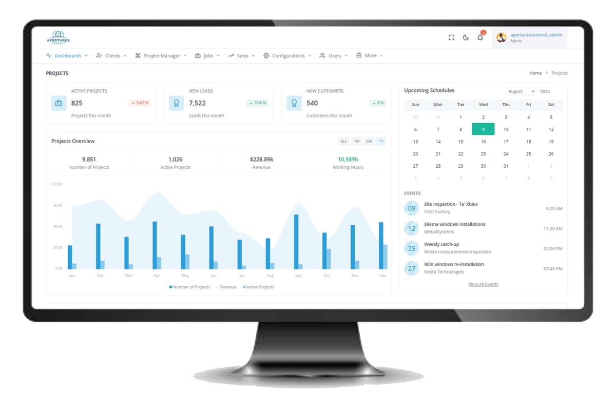 Das Apertures CRM für Unternehmen in der Fenster- und Türenbranche.