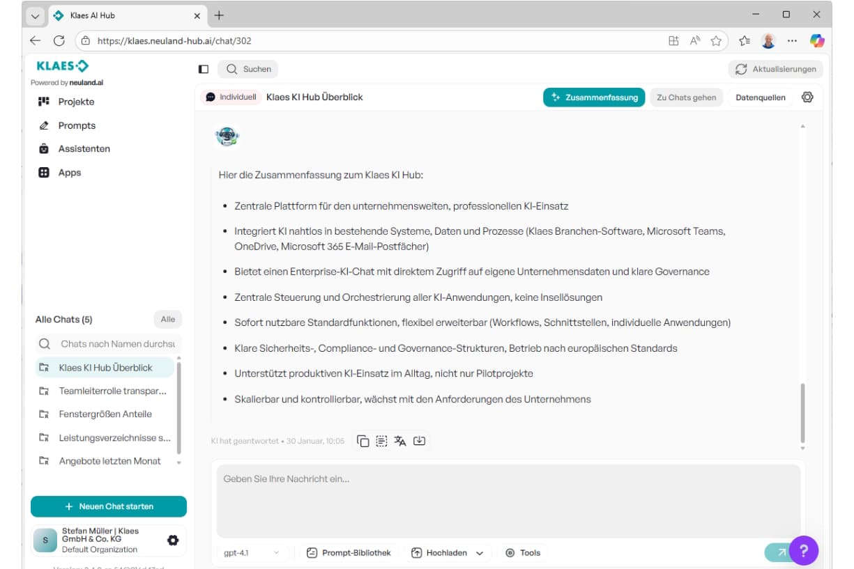 Klaes KI Hub – Künstliche Intelligenz mit echtem Unternehmenskontext