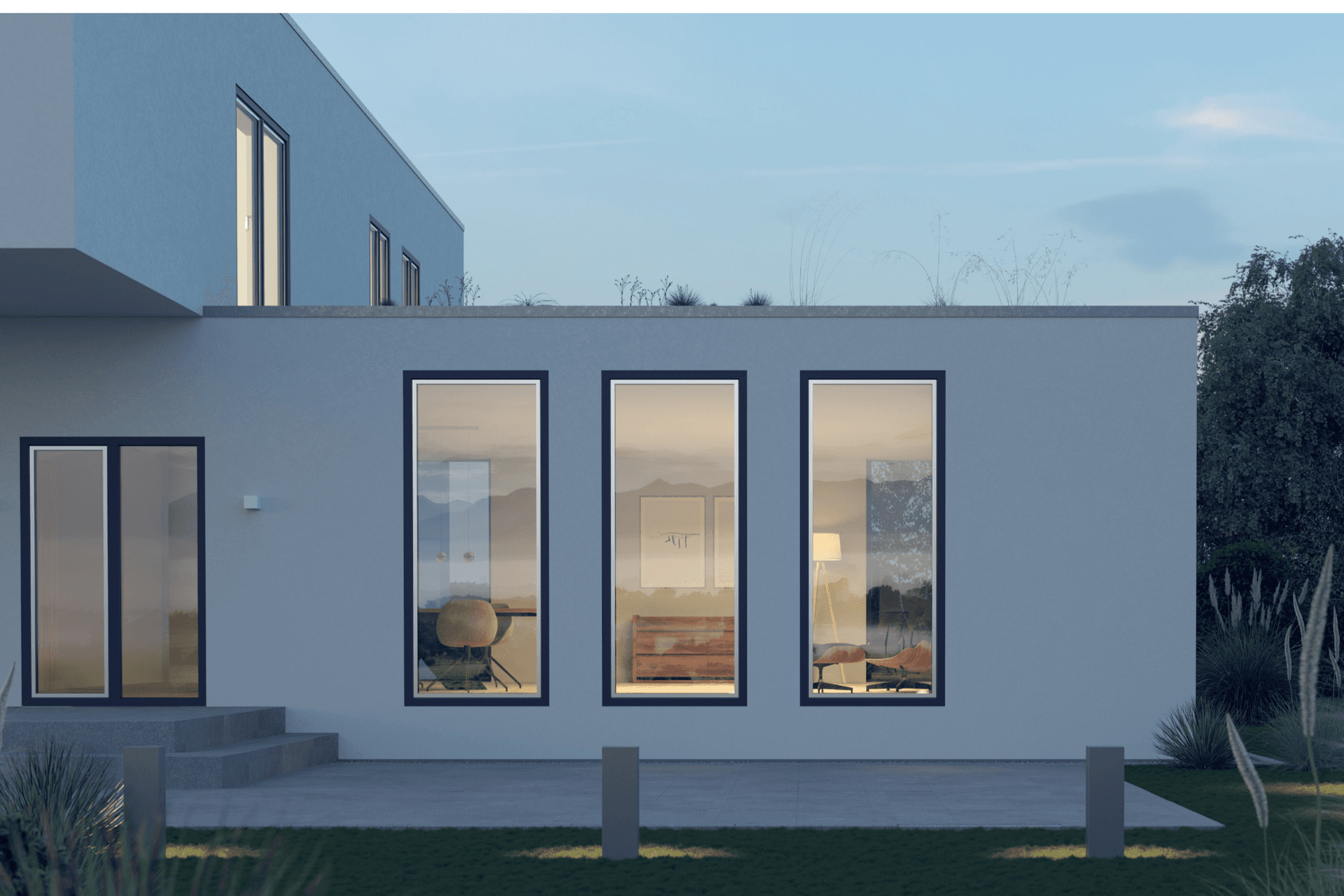 - geschosshohe & bodentiefe Fenster bis 2,80 m Höhe im Ganzglas-Look