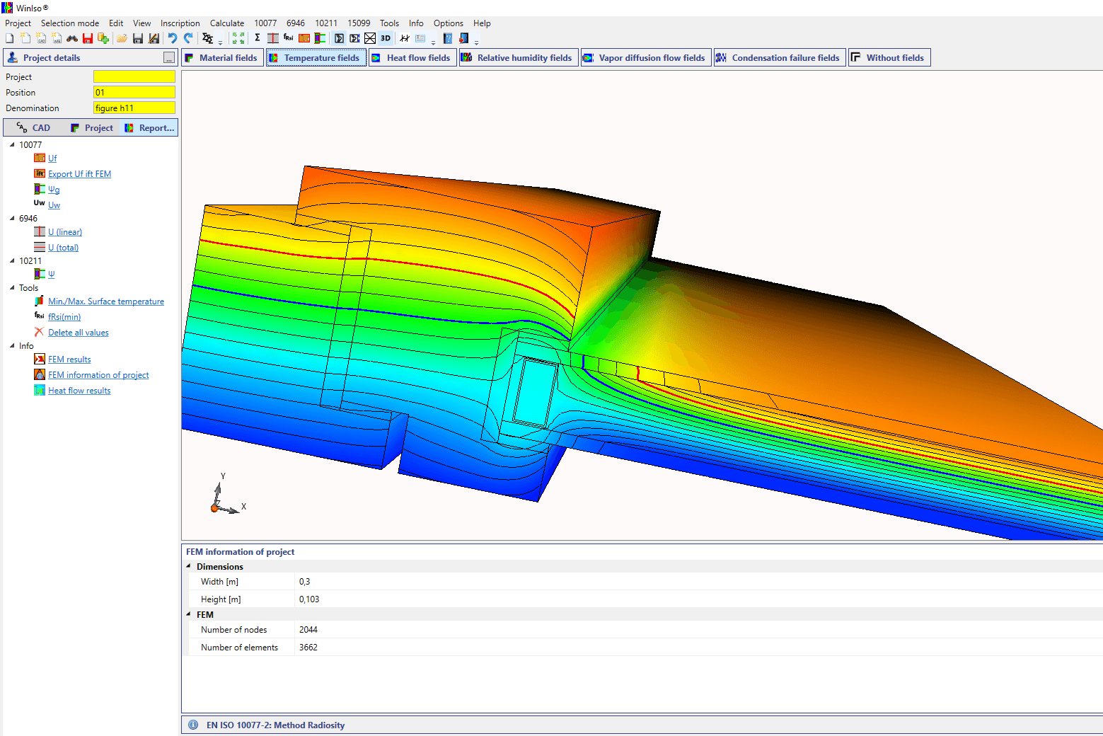 Berechnung von Wärmeströmen, Isothermen, Uf– und Ψ-Werten nach EN ISO 10077-2 sowie Ufr-, Ueg– und Ucg-Werte nach ISO 15099 / NFRC 100 und 2D und 3D Wärmebrücken Berechnung