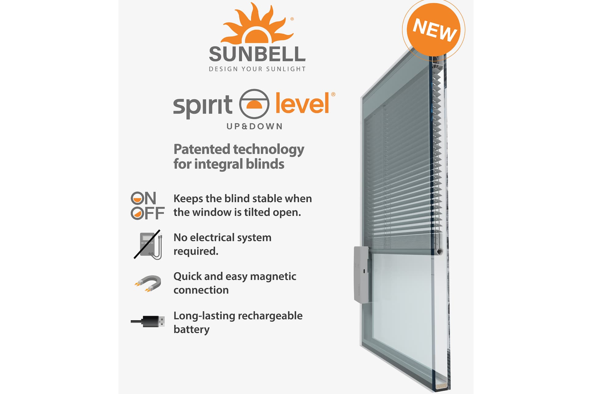 Die Integral Blind mit wiederaufladbarem Akku ist die patentierte Lösung von Sunbell für im Scheibenzwischenraum integrierte, motorisierte Venezianer, entwickelt für Komfort, einfache Bedienung und eine harmonische ästhetische Integration.