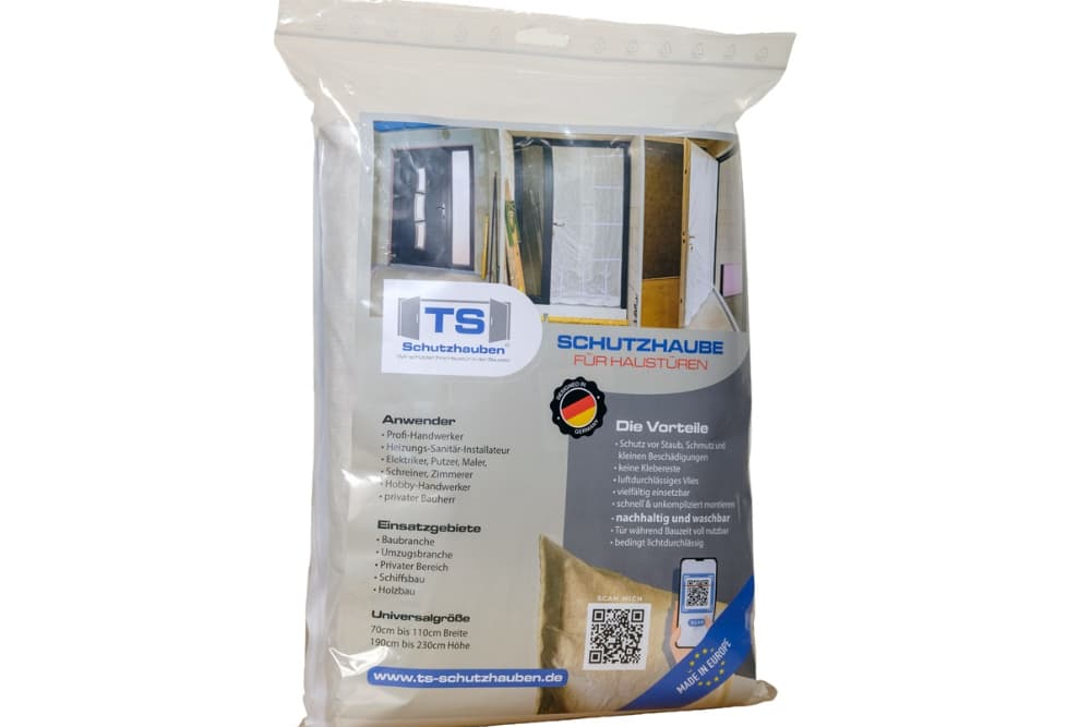 Als nächstes werden die Fenster und Außentüren montiert. Anschließend folgen die restlichen Gewerke: Innen- und Außenputz, Estrich, Elektriker, Tischler, Haustechnik, Maler und mit ihnen die Herausforderung die neue Haustür vor Staub, Schmutz, Farb- und Putzreste und leichten Beschädigungen zu schützen!
