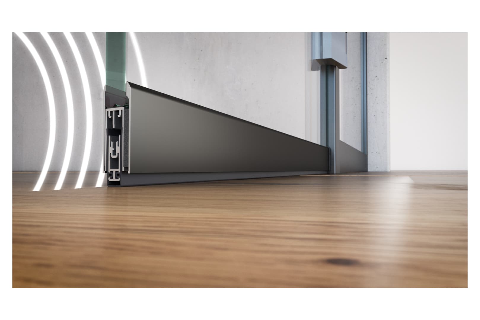 The task of an automatic door seal is to ensure that the gap between the floor and the swing door is tightly closed. And it works like this: when the door is closed, the seal automatically lowers due to a release mechanism. The lower gap between the floor and the door closes and noises, draughts and cold no longer have a chance to penetrate the room.