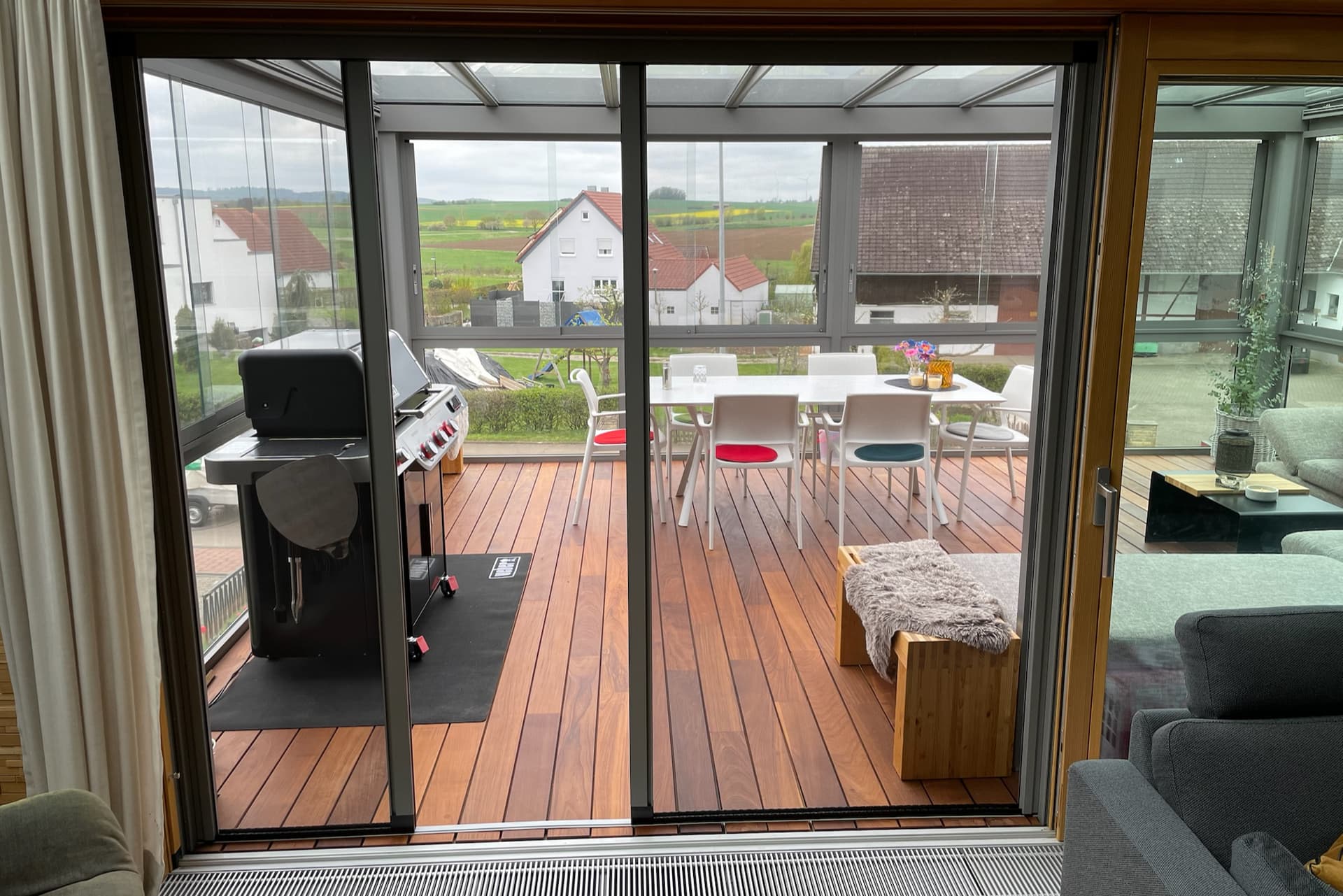 The roller door combines transparent mesh with a proven caterpillar mechanism to set a new standard for insect screen doors on the market. Despite the spring tension in the roll-up mechanism, seamless opening and closing is possible via the integrated handle bar. Thanks to the caterpillar guidance at the top and bottom, the roller door is both robust and smooth-running. Ideal for large openings or expansive windows, the roller door covers them effortlessly without obstructing the view. In the event of a collision, the mesh gives way and returns to its original position via the spring-mounted bearing. The roller door is supplied and installed as part of our all-in-one concept, with no further adjustments required.